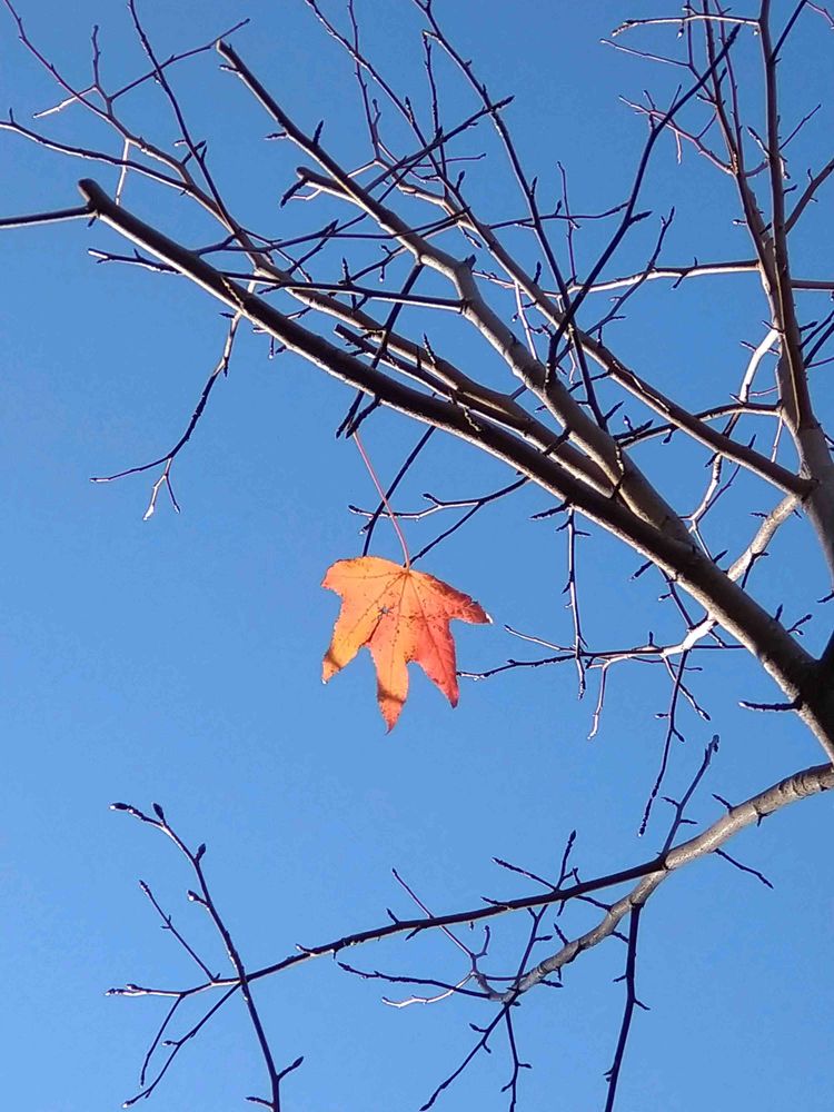 私の職場近くにモミジバフウがあるのですが、タイミングよく青空をバックに見上げることは少ないです。