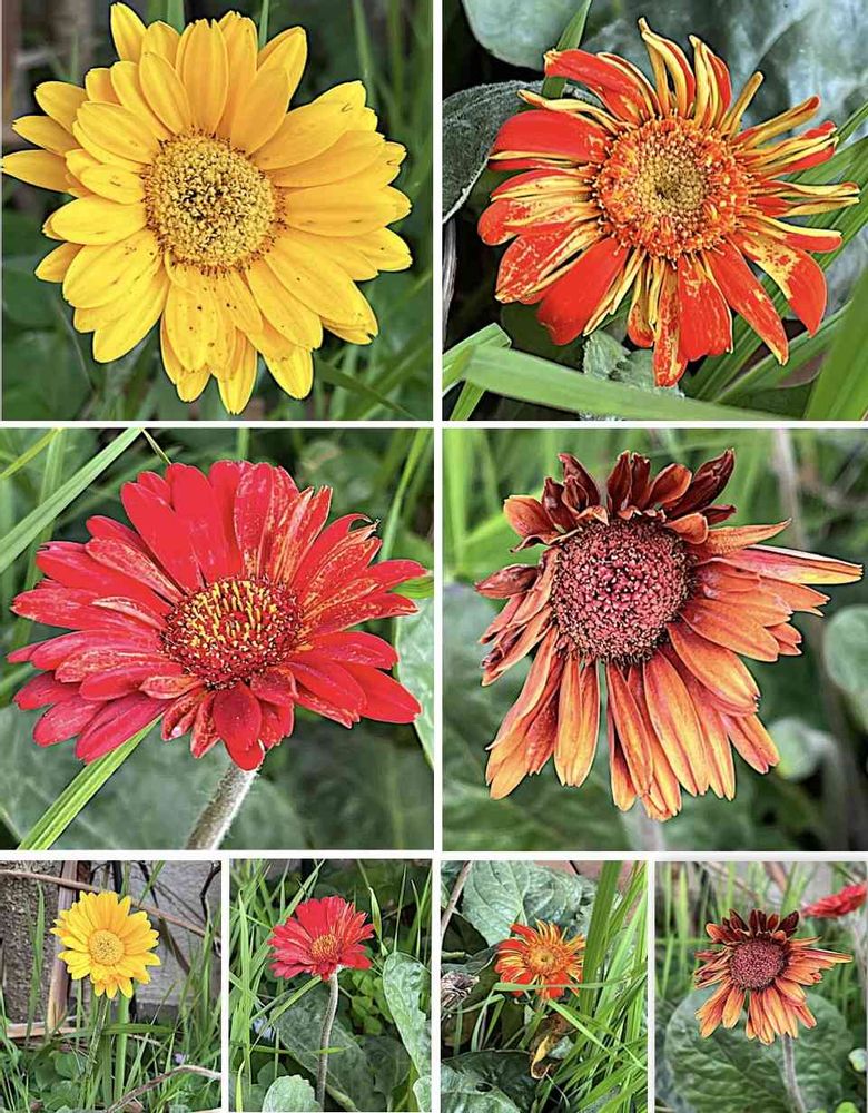 それらは、それぞれは黄と橙とまた赤の暖色持って、あるはそれらの複色を持って。 当初は、季節外れのタンポポ(いわゆるタンポポにしては大きく過ぎる)とも、また、ヒャクニチソウとも見誤りそうになった草花である。