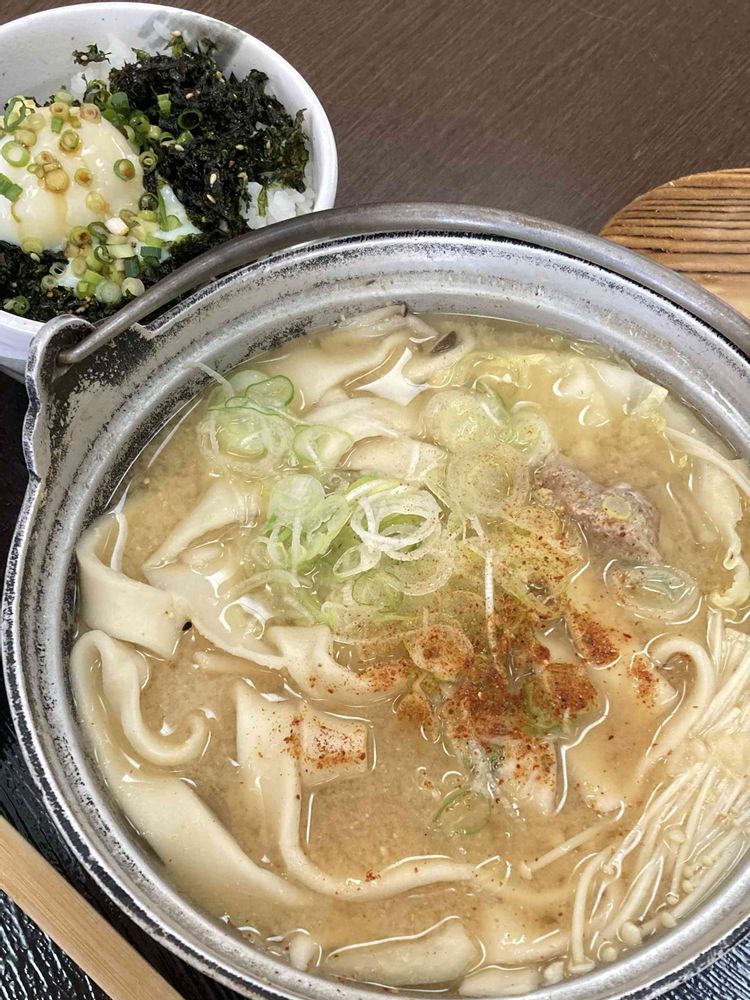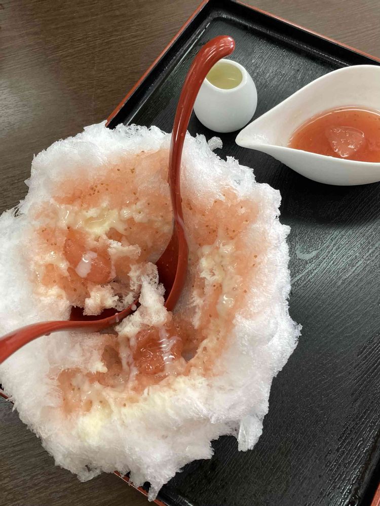 館内の食堂で食べた、ほうとううどんと、ふわふわかき氷のいちごソースがけ、また食べたいなぁ🤤💕