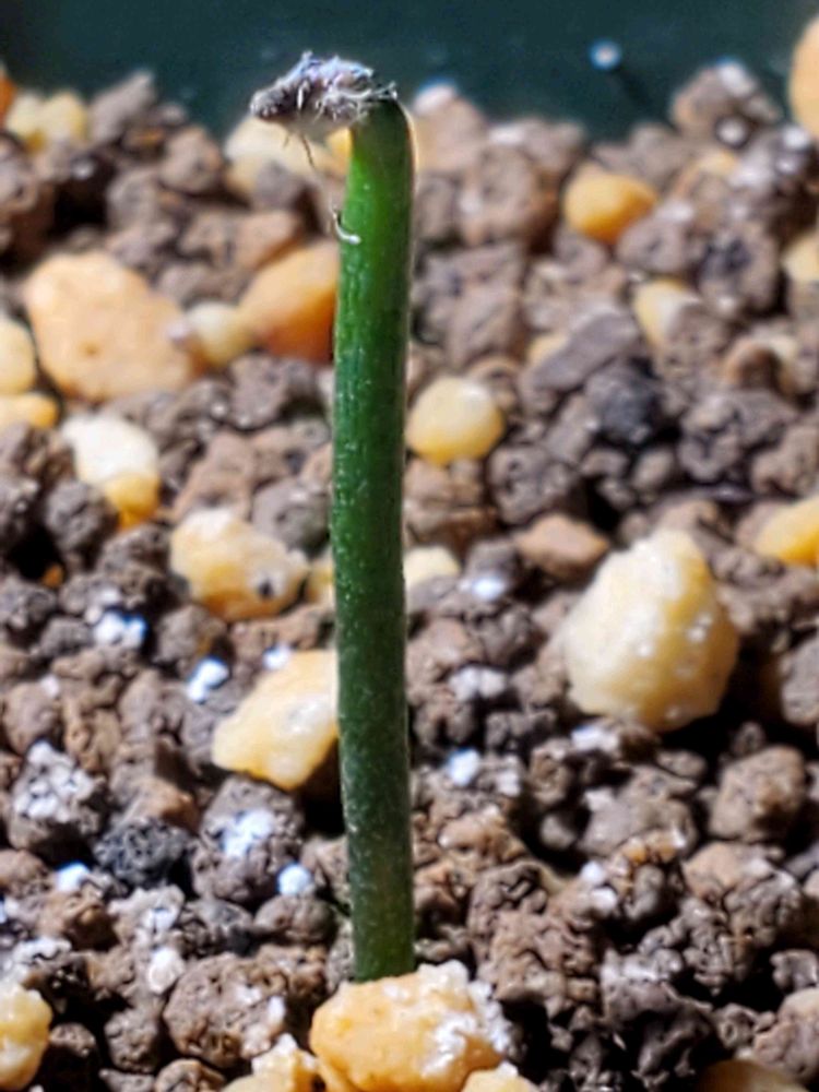 播種する時、根の出る尖った方を下に向けると、発芽が安定すると判ったときは遅く、パラドクサムは反対向きに埋めてしまい、くるくると根が回るうちに力尽きた感じです。