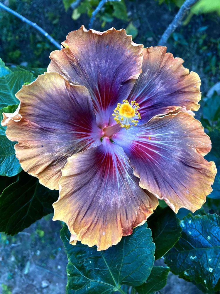 このハイビスカス、今回は黒い部分が多いんですけど、もっとオレンジっぽい時もあるし、茶色っぽい時もあるし、色はなかなか安定しないようです🌺