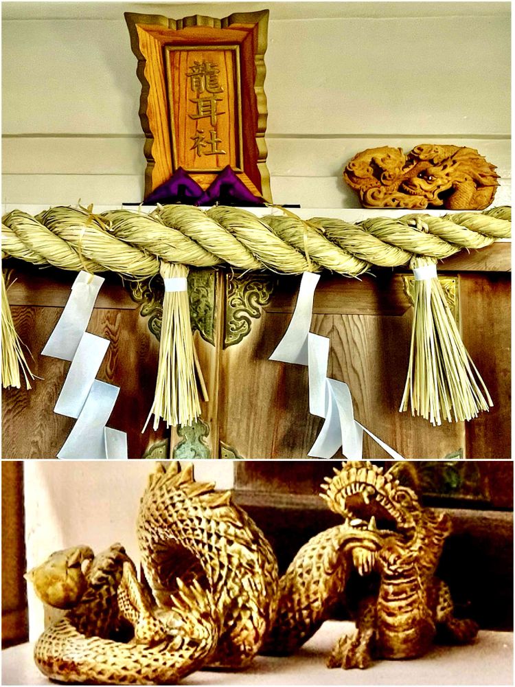 お社の扉の両脇には、とても可愛らしい😅耳のある龍の置物が2体あります。