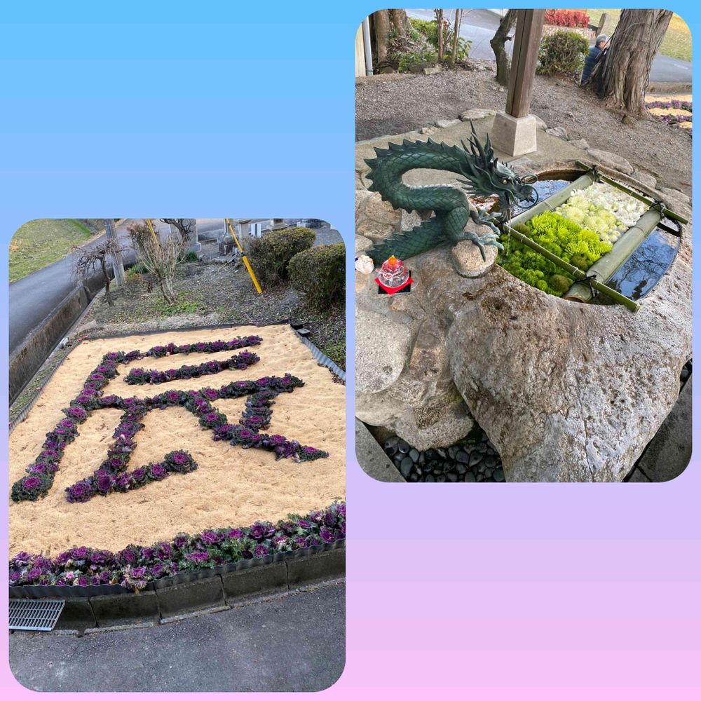 龍の口から水が出て、花手水にお花が浮かべられ、正に辰年です🤗👍