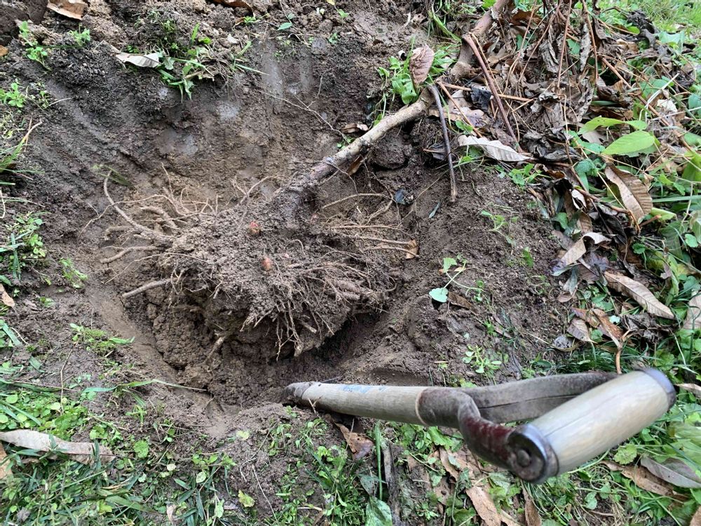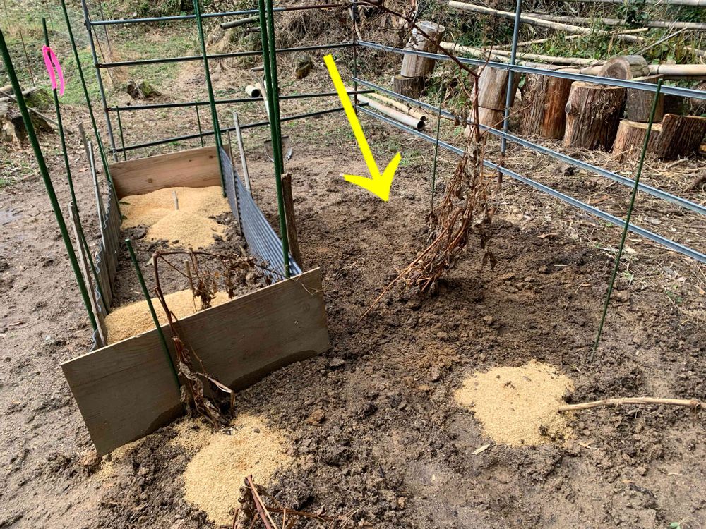 ウドの再移植を敢行しました😀新芽も6つくらい付いてました😊例によって畦板で囲み、株にもみ殻を掛けておきました😀