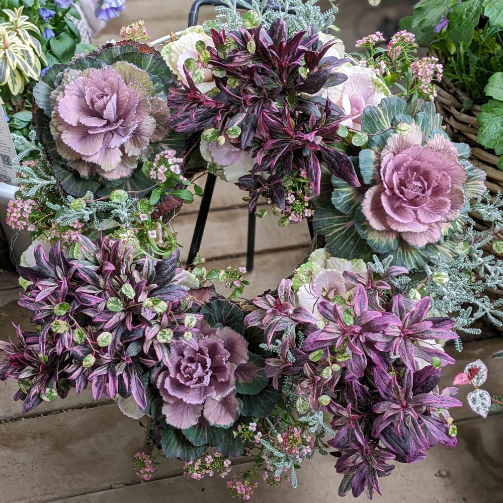 本当はもっと渋〜い感じにするつもりだったのですが気に入っています😉あまり細々とした葉牡丹リースは性格上、苦手でドーンとした葉牡丹をメインにしてみました❣️