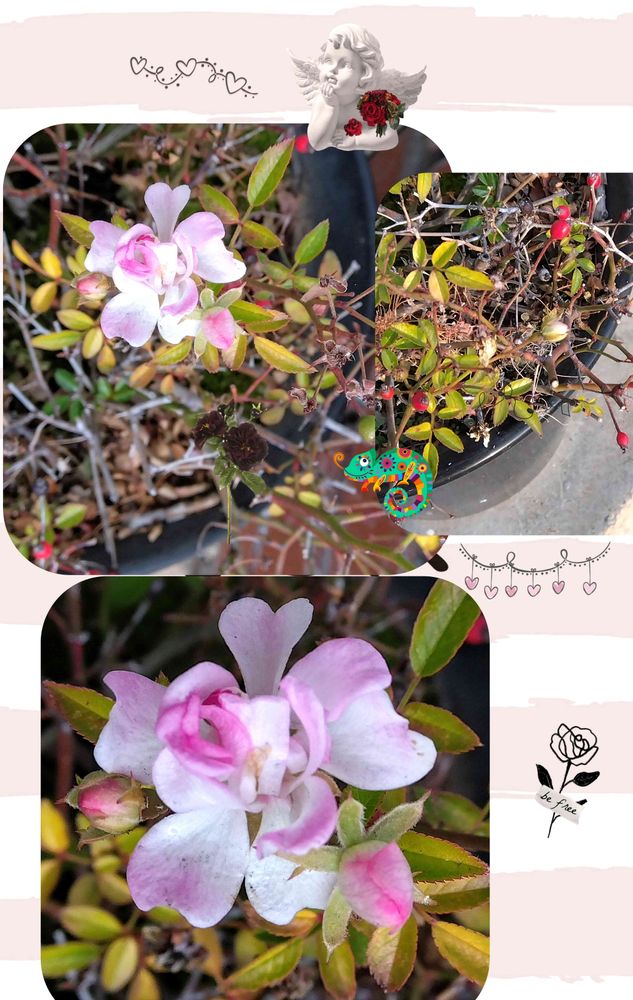 ①ご近所さんのミニバラ🌹もう 何十年も植え替え無し~🔴ヒップ🩷