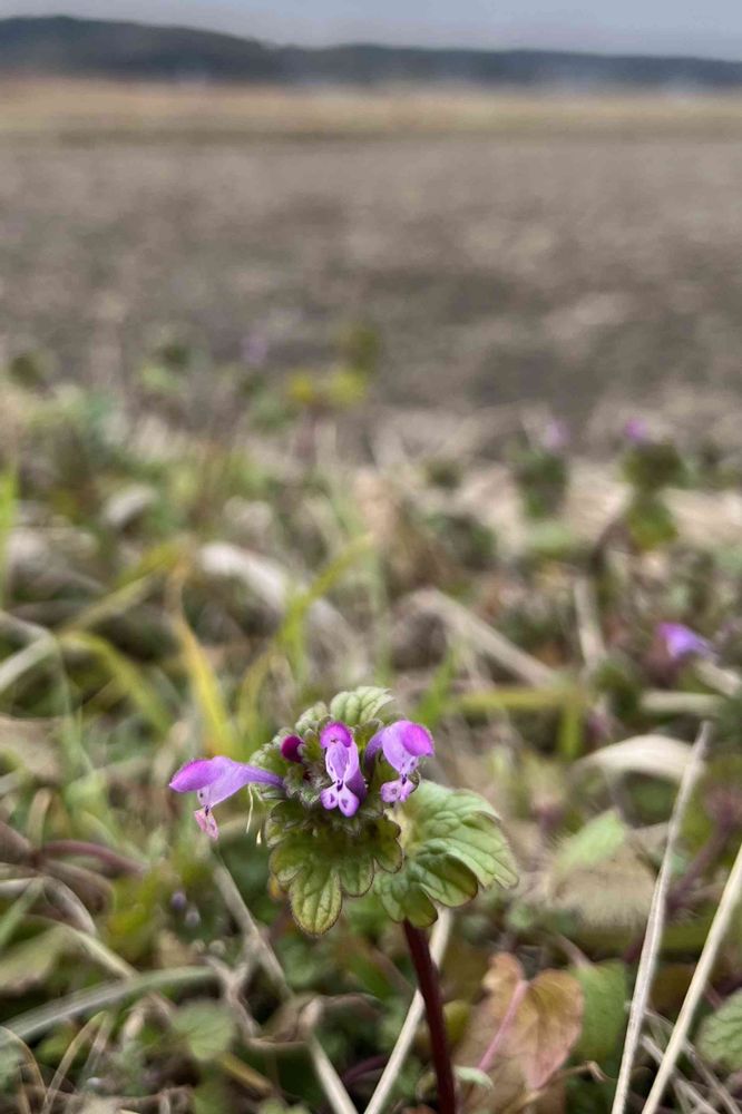 田んぼの畦道に春の七草、仏の座が咲いていました。