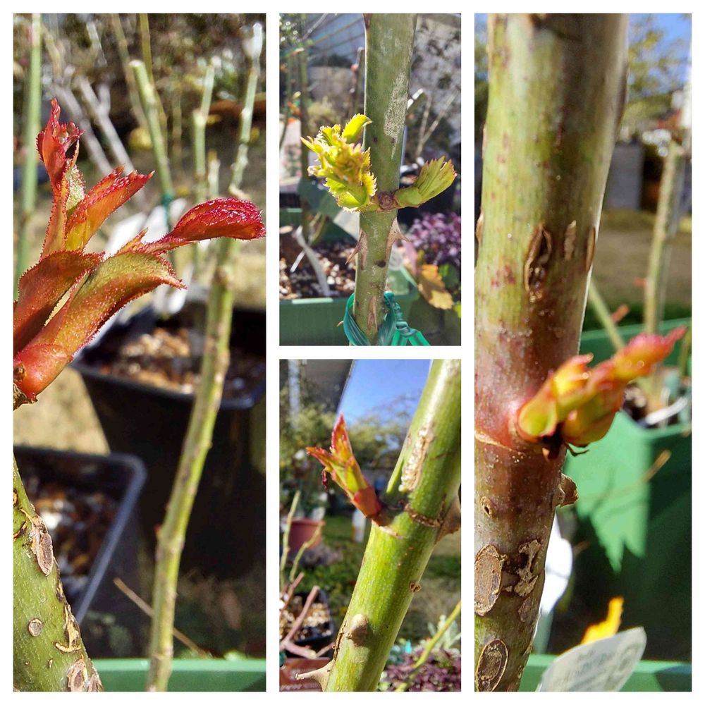 京阪園芸さんから12月届いていた薔薇の大苗7本のうち4本が芽吹いていた🌱