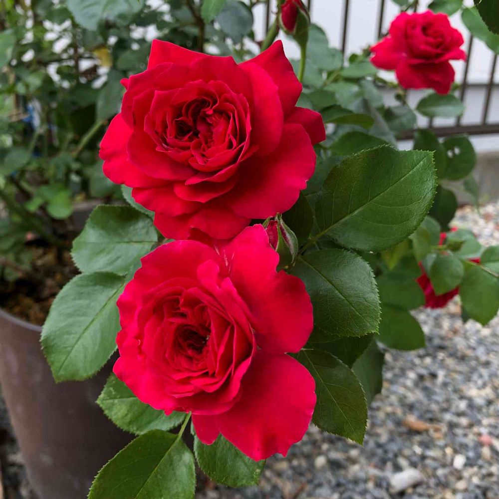 うちの唯一の赤🌹薔薇はクリスチャンディオールで、二番花の蕾 二つ出来て、上手く咲いてくれるか楽しみです♪・.。:*・♬*