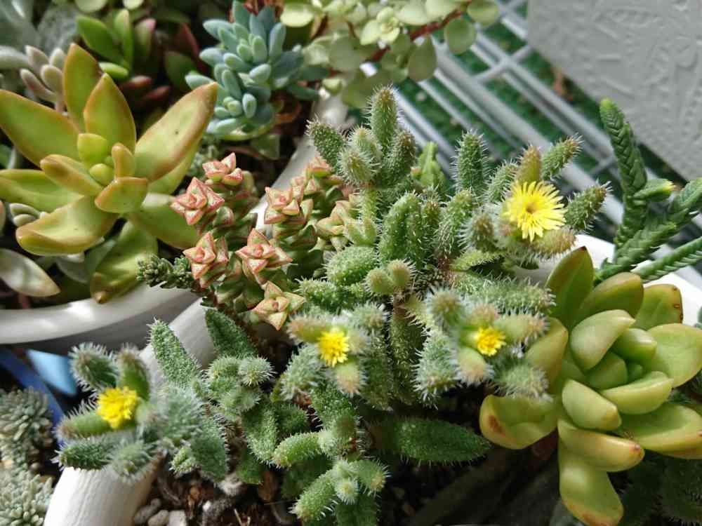 雷童さんにぽこぽこ♪と小さな黄色いお花が咲きました~✨☺️可愛い~♪♪♪ここら辺の鉢は寄せ植えの残りの子達が自由に寄せ植えされてます☝️というか。。。時期によって出入りが激しい鉢です💦
