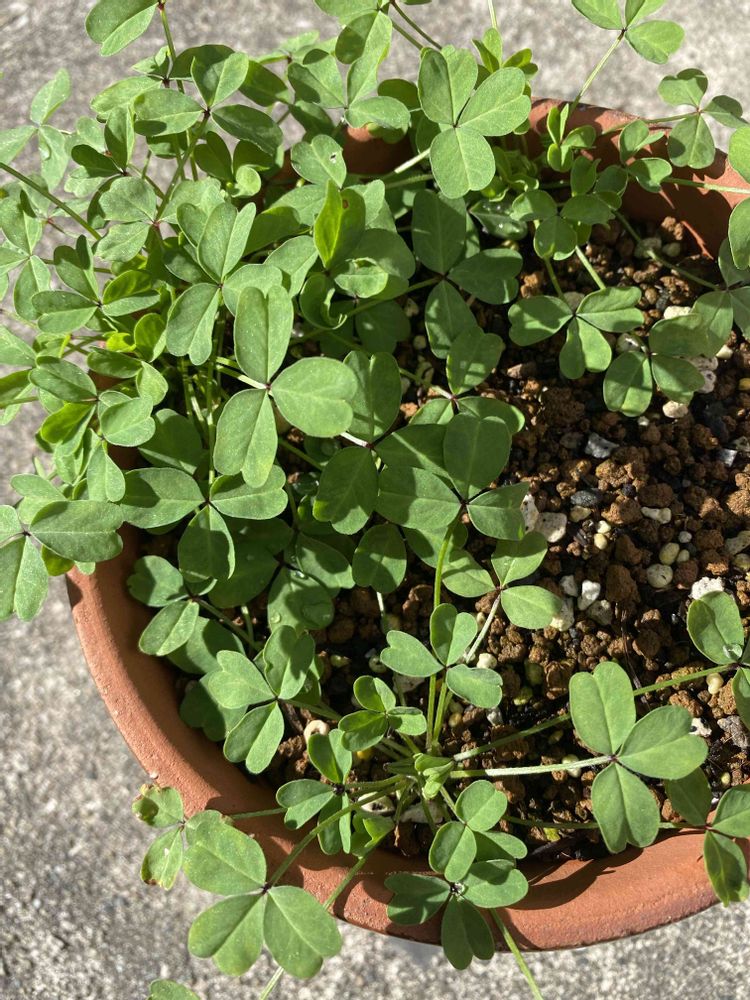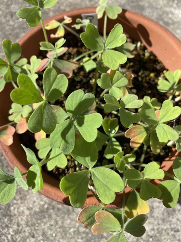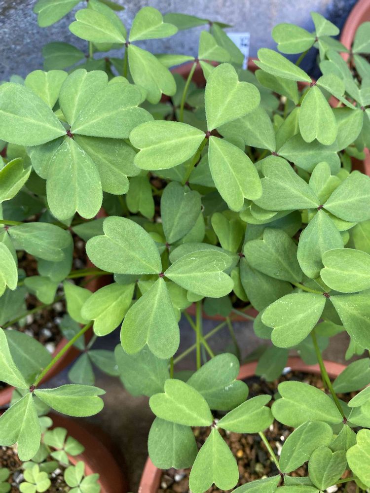 オキザリスを中心に、小さな庭で花を楽しんでいます。