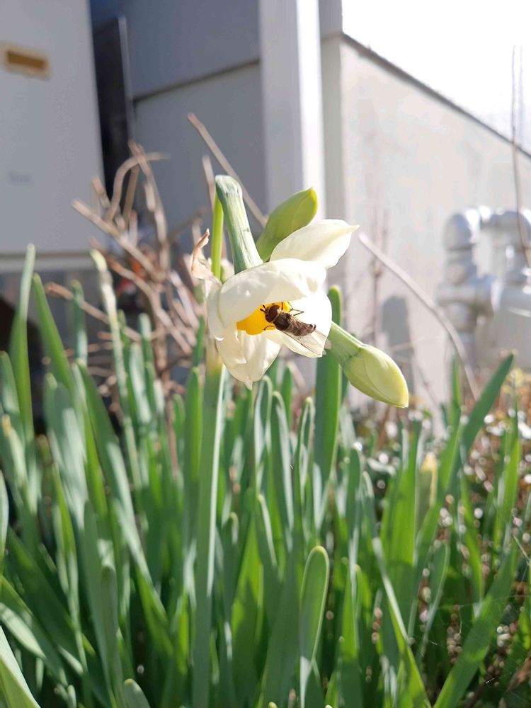 小さい蜂のような虫がとまっていました。少し暖かいので虫たちも動きやすい日ですね😆