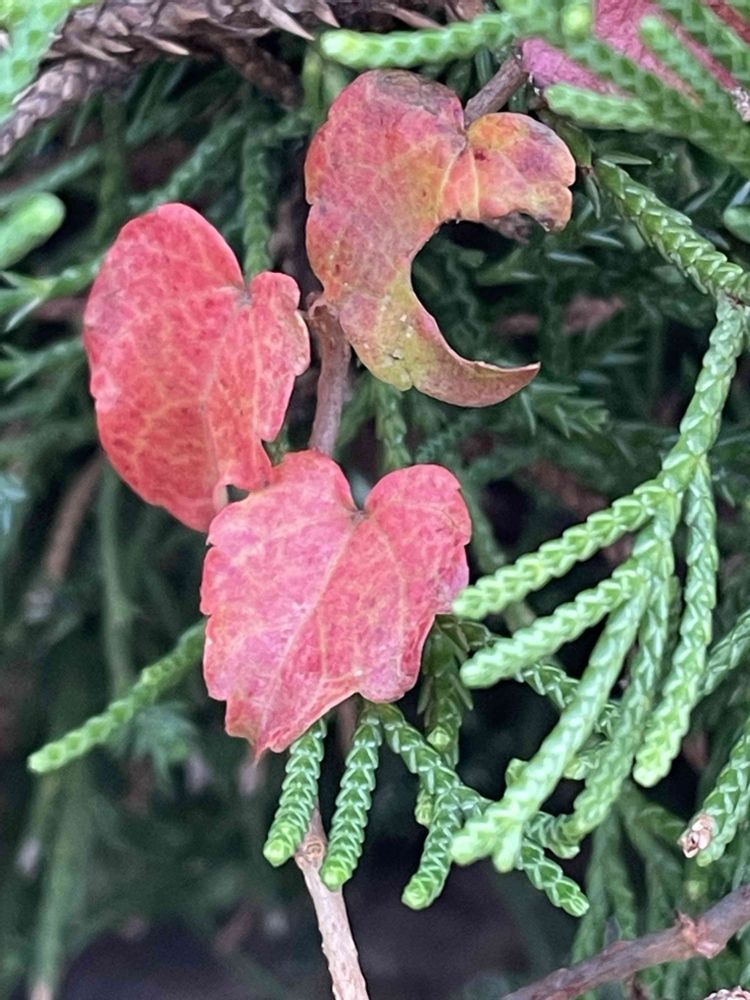 アップルのマークみたいなマメヅタ🍎カイヅカイブキに守られてます🤱