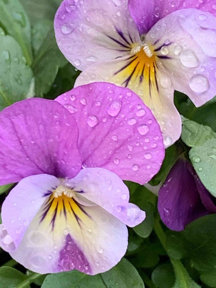 水💦も滴るいいオンナっていうのは私のことですかぁ?ってパンジーさんが聞いてます💦雨上がりの庭からはお花さん達からのそんなお喋りが聞こえてきます💜🤭