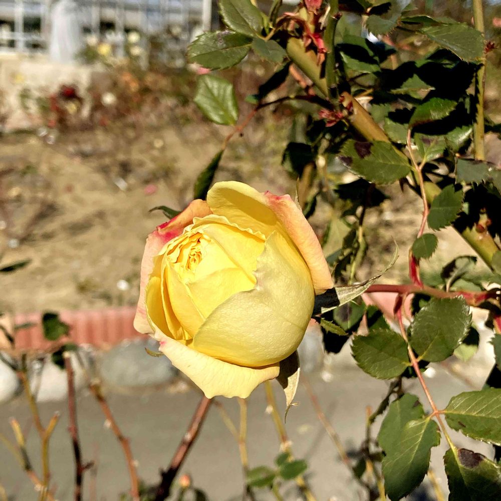 年末でミニバラ園は閉館して中には入れなかったけど、外側から蕾を
