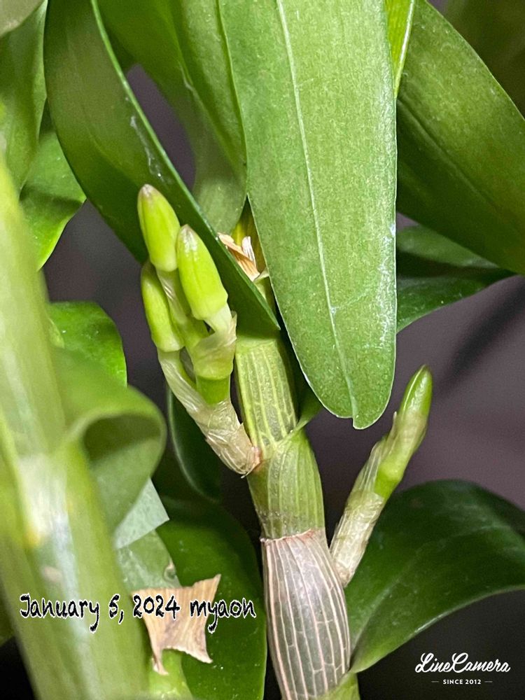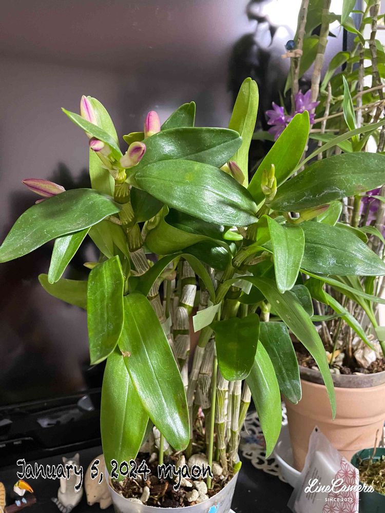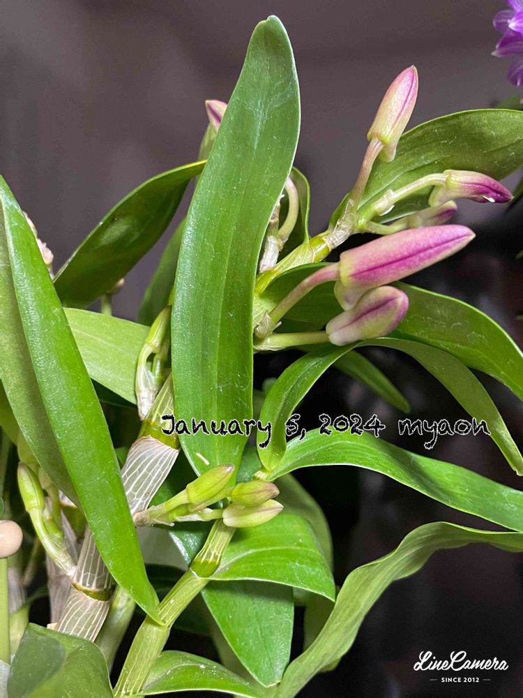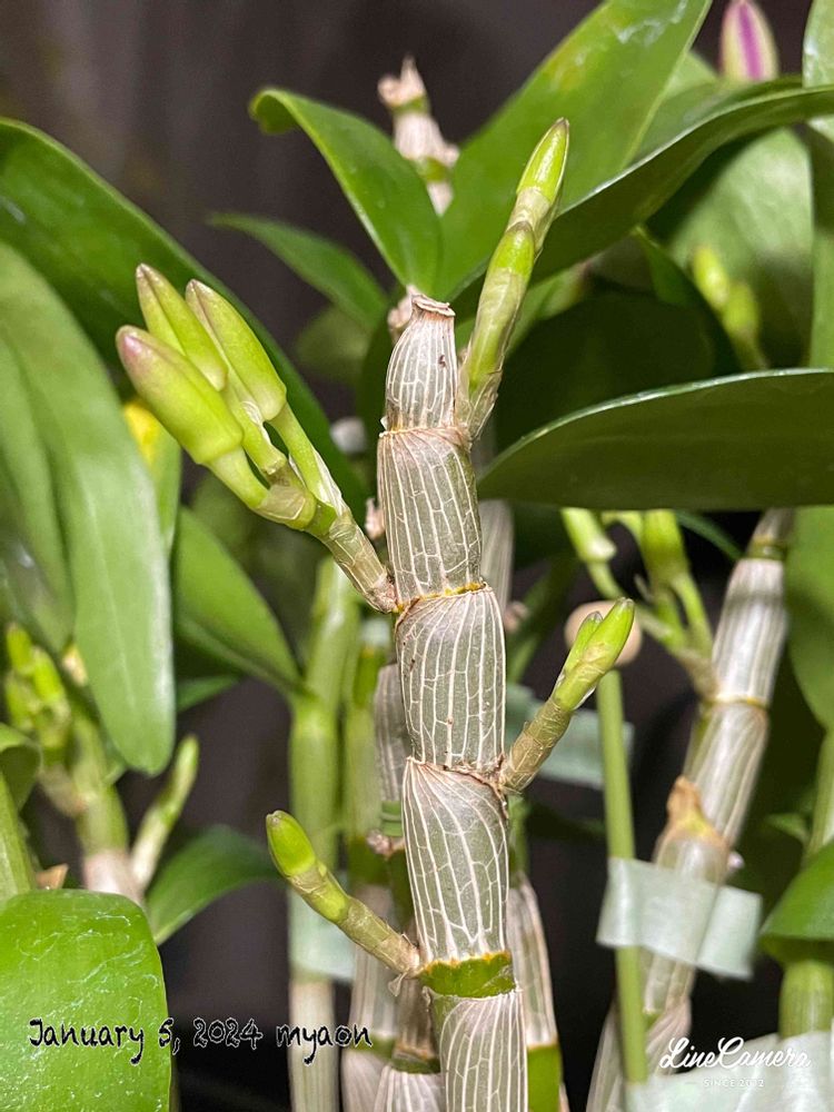 デンドロビウム “花車”気がついたらと言うより蕾に色が付いて気がついたꉂ🤣wポチッと花芽があると思っていたんだけれど、色が付くまで早かったかも…
