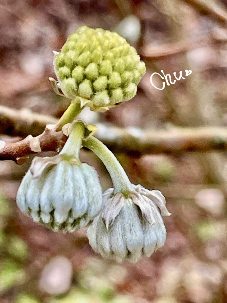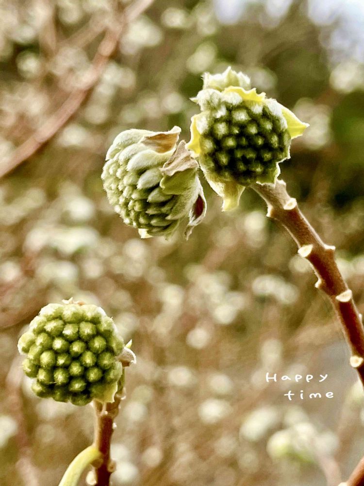 開花が楽しみなミツマタ、たくさんの蕾が膨らんできたよ🥰💛