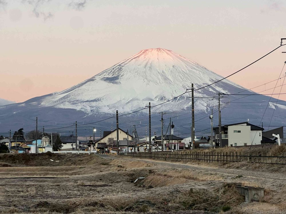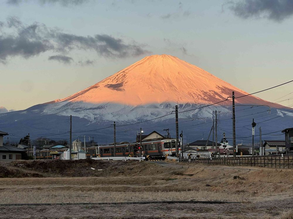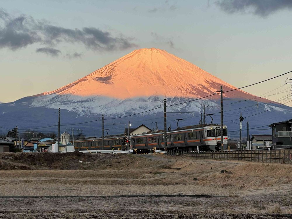 雪化粧し直した富士山,日の出直後の富士山6:54,御殿場線の下り電車の投稿画像