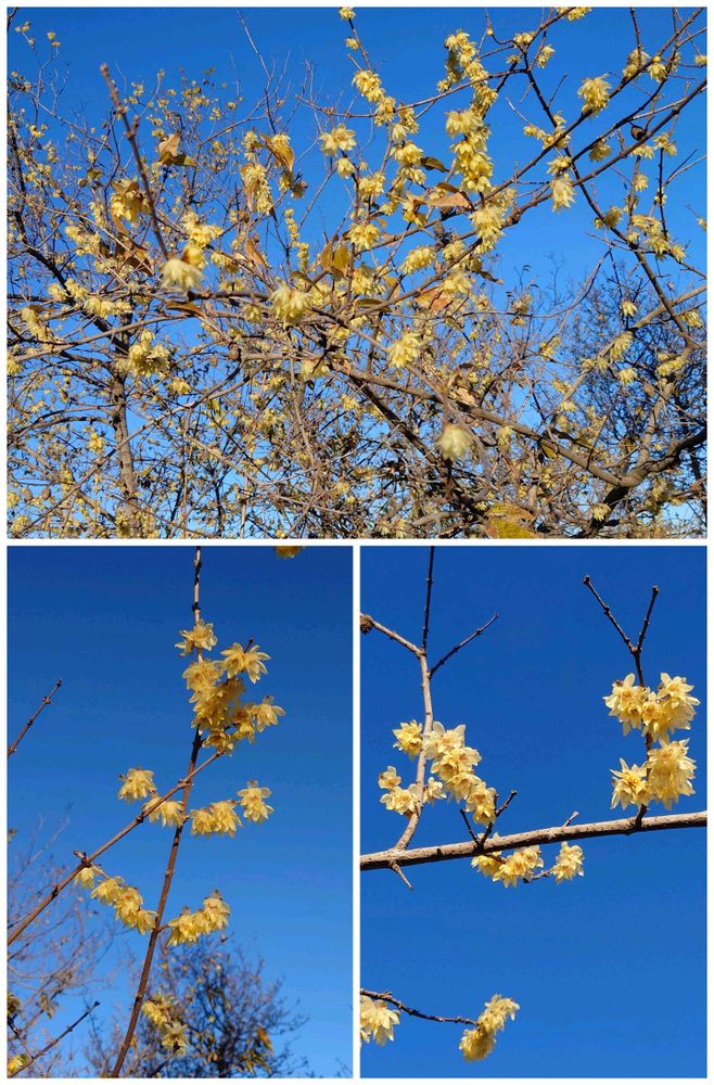 さん、おはようございます☀😀 そういう季節になったみたいです🙂 昨日は晴天でしたが、散歩するには北風が強くて寒かったです。そんななかきれいに咲くロウバイに出会えてよかったです🙌