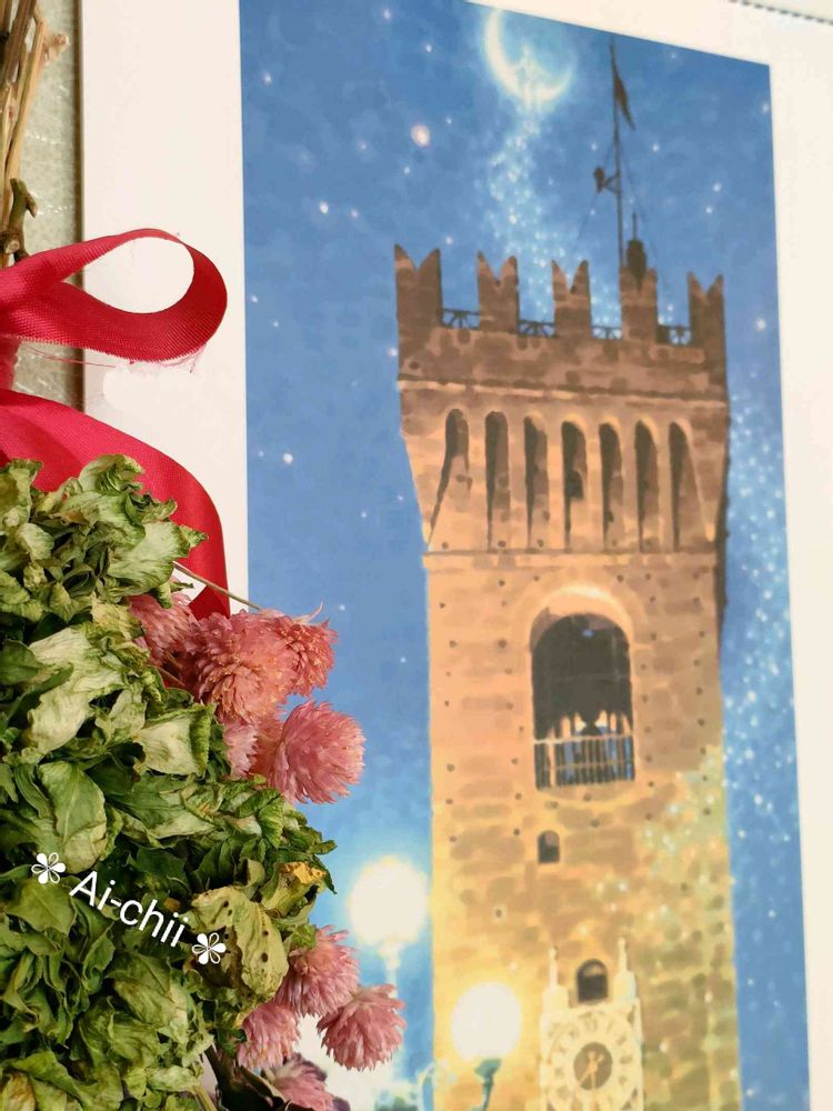 絵ですけど、歴史ある塔とドライフラワーとがマッチしたでしょうか?🤭