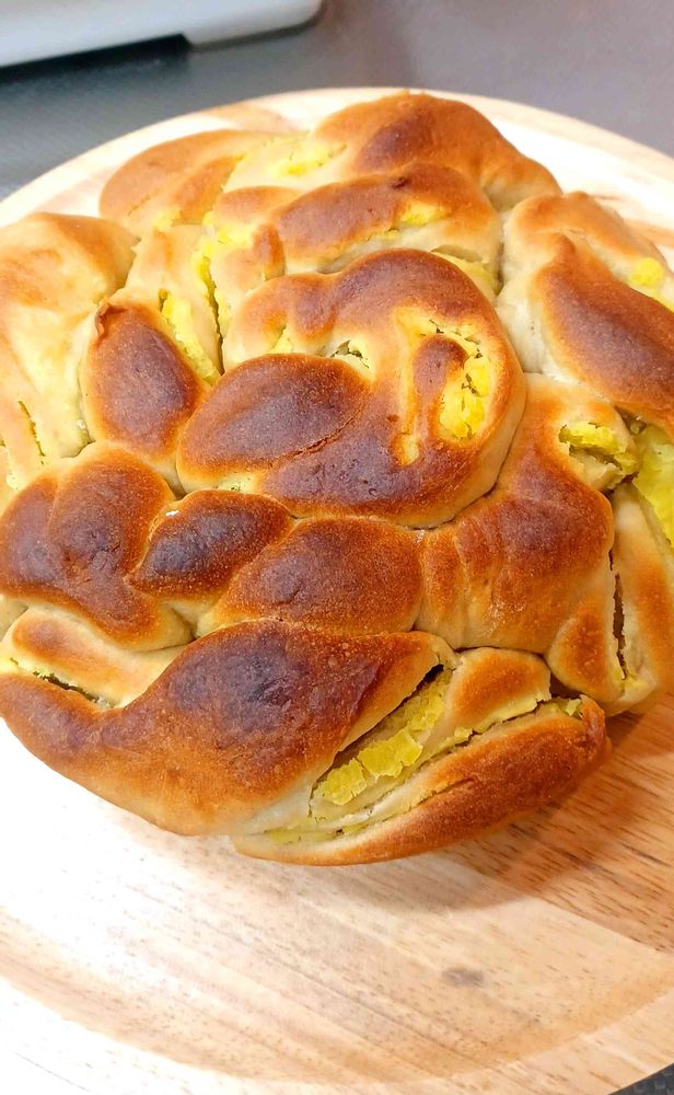 そんなきんとんの残りを栗パウダー入りのパン生地に挟み、ねじねじして焼いてみた。