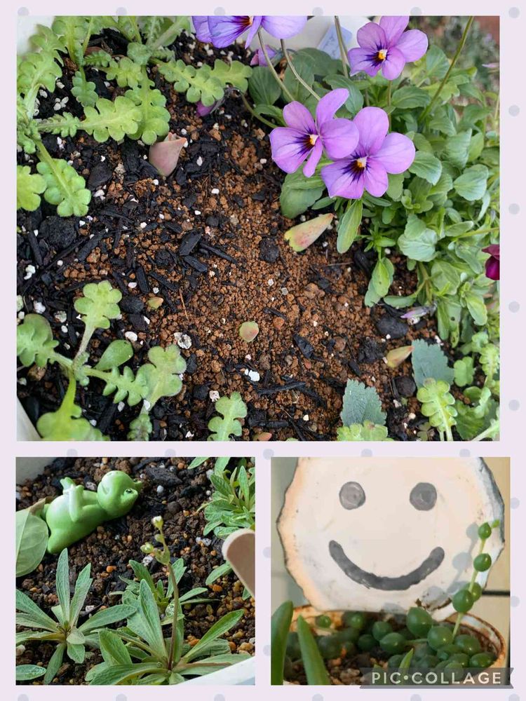 上:生協で購入したチューリップの球根を植えた鉢です🌷水やりを忘れないようにと植え付けた種蒔きビオラが咲き始め、周りに蒔いたネモフィラも発芽して順調✨でも、チューリップなかなか芽が出ないと思ってたら!やっと出た〜😆これからが楽しみです😊