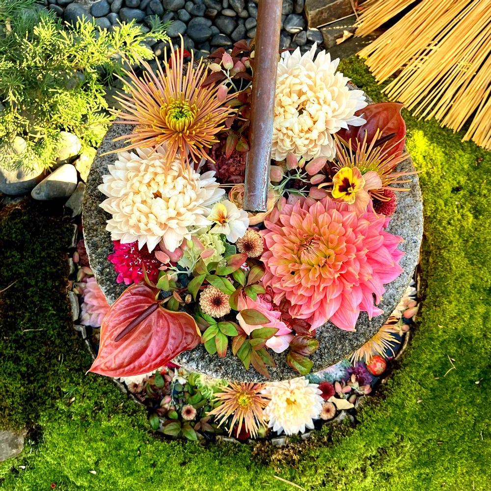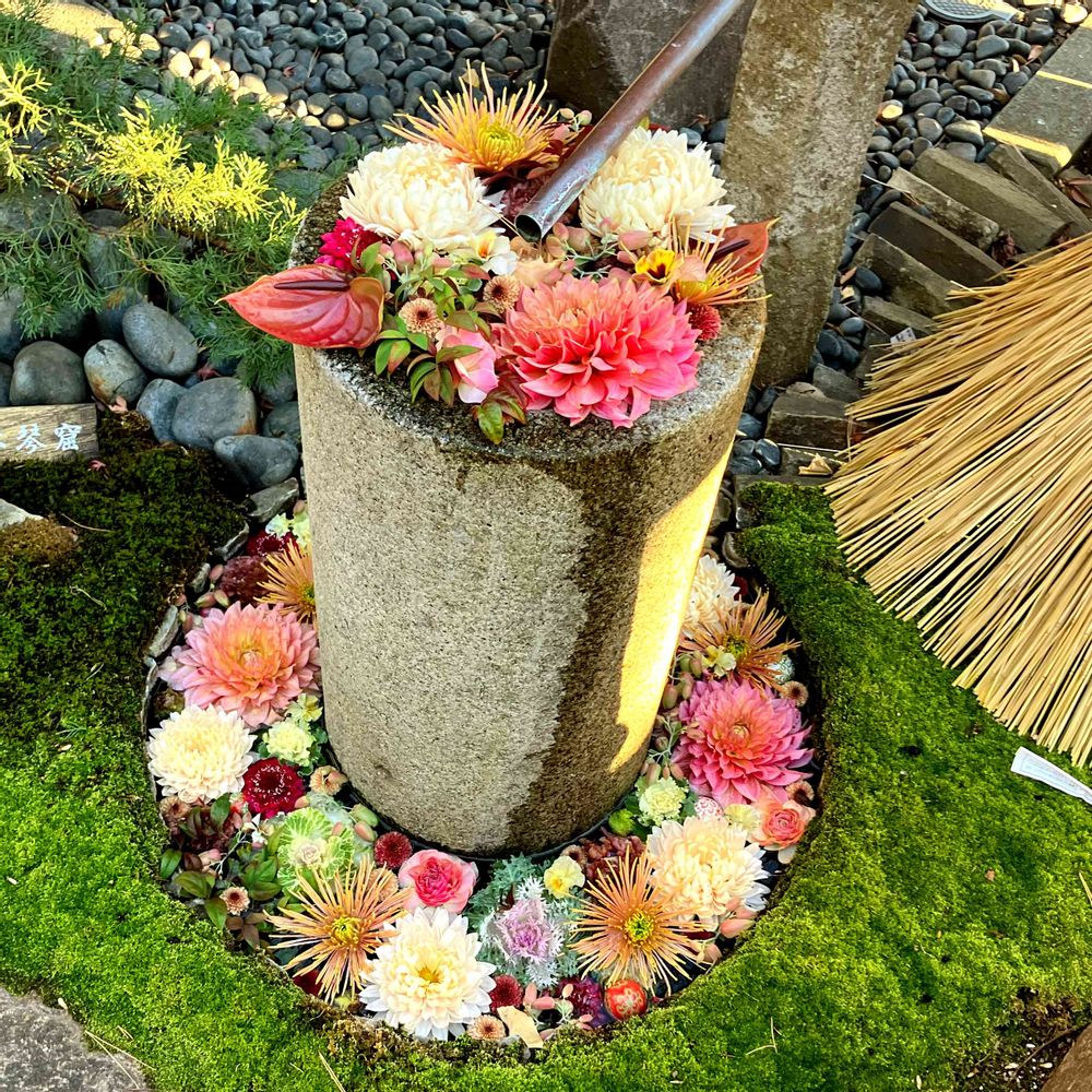 花手水にコレも?というようなお花が入っていて可成り目を引くものでしたよ〜