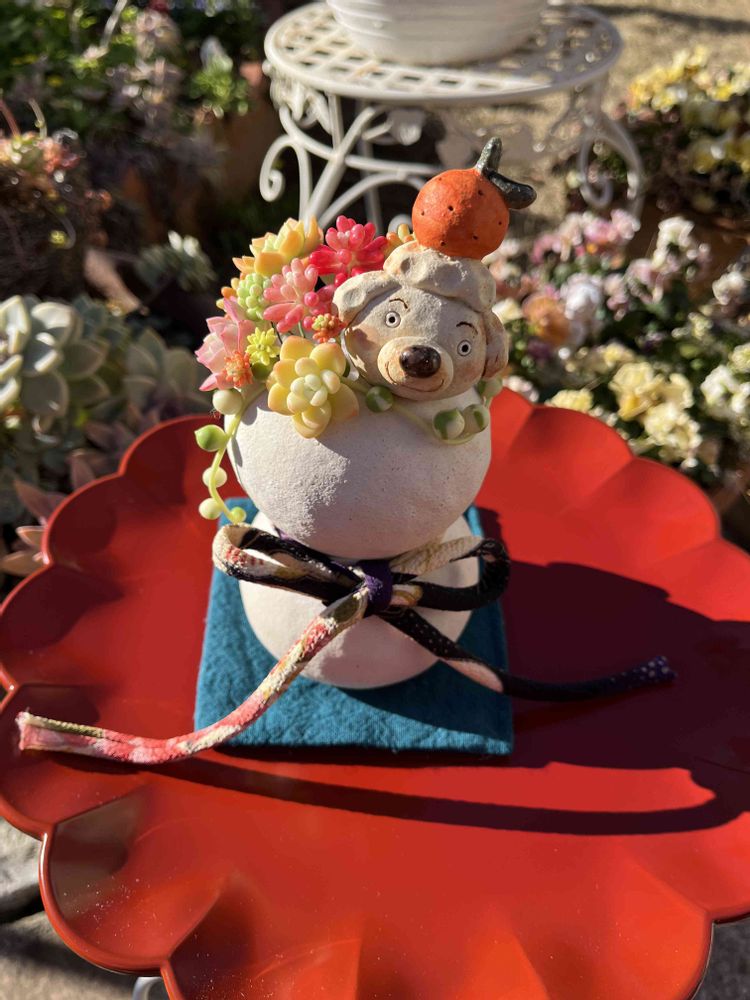 この鉢の作家さんが大好きで、ゆるゆるな表情の🐶に癒されてます。