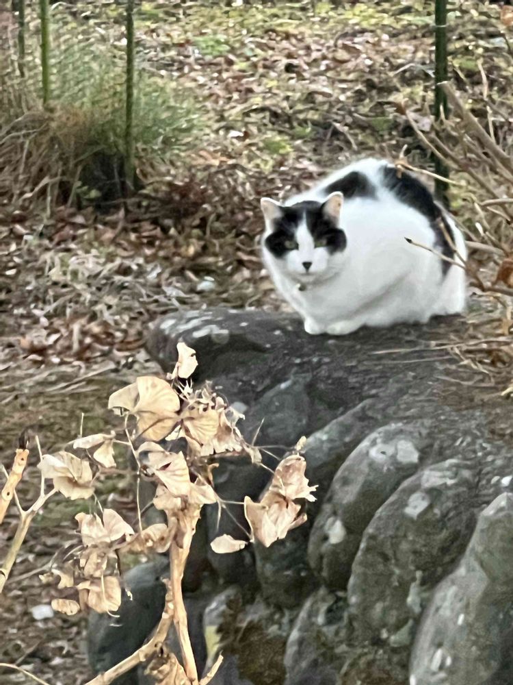 枯れた紫陽花の向こうから見ている猫ちゃん