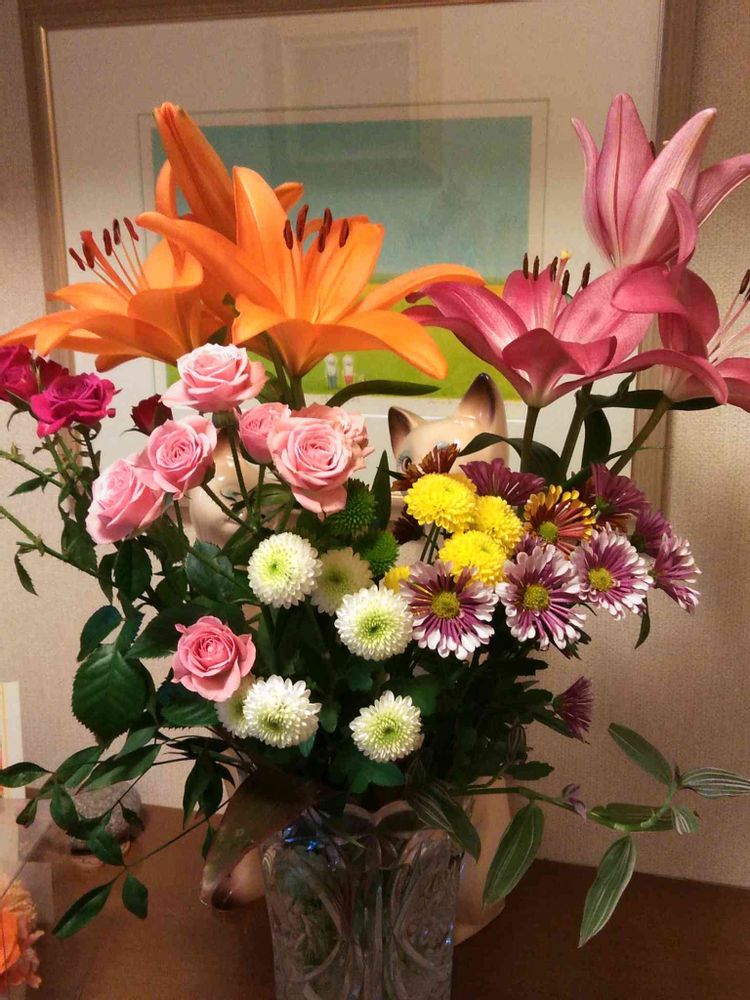 正月用の玄関の花。百合が咲きました。😊