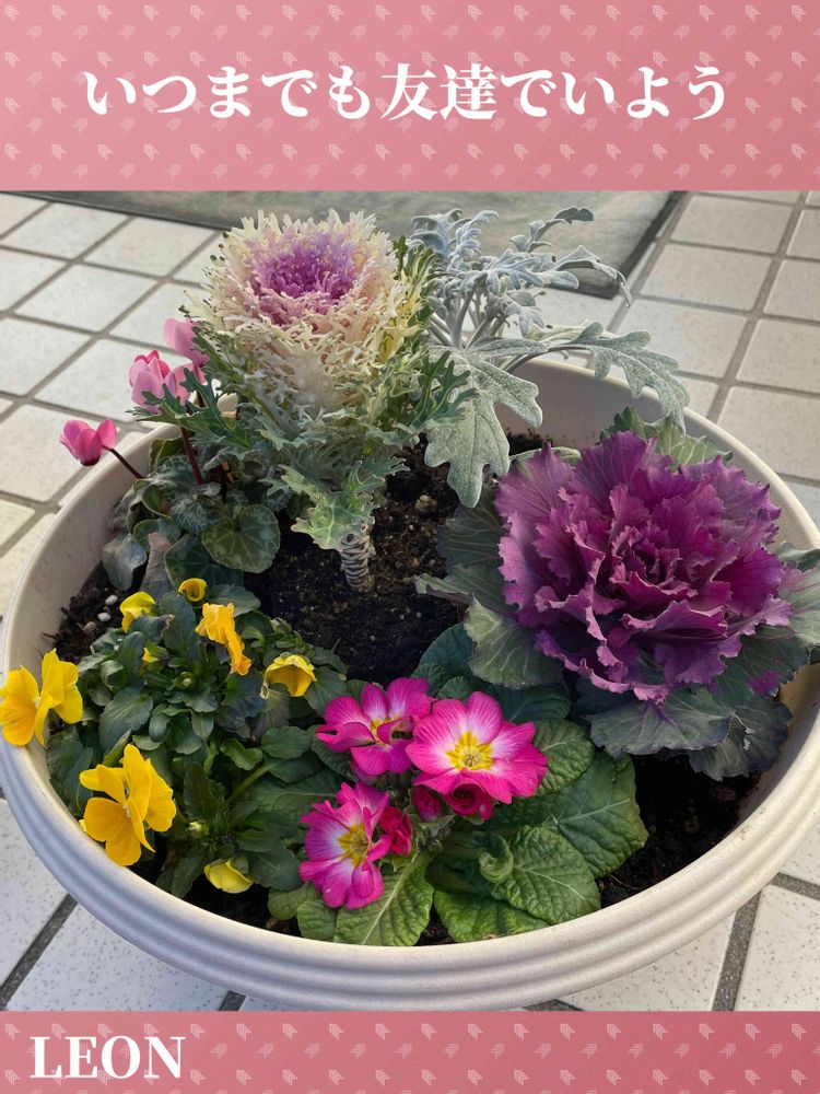 葉牡丹とジュリアンとパンジーの素敵な寄せ植え💕
