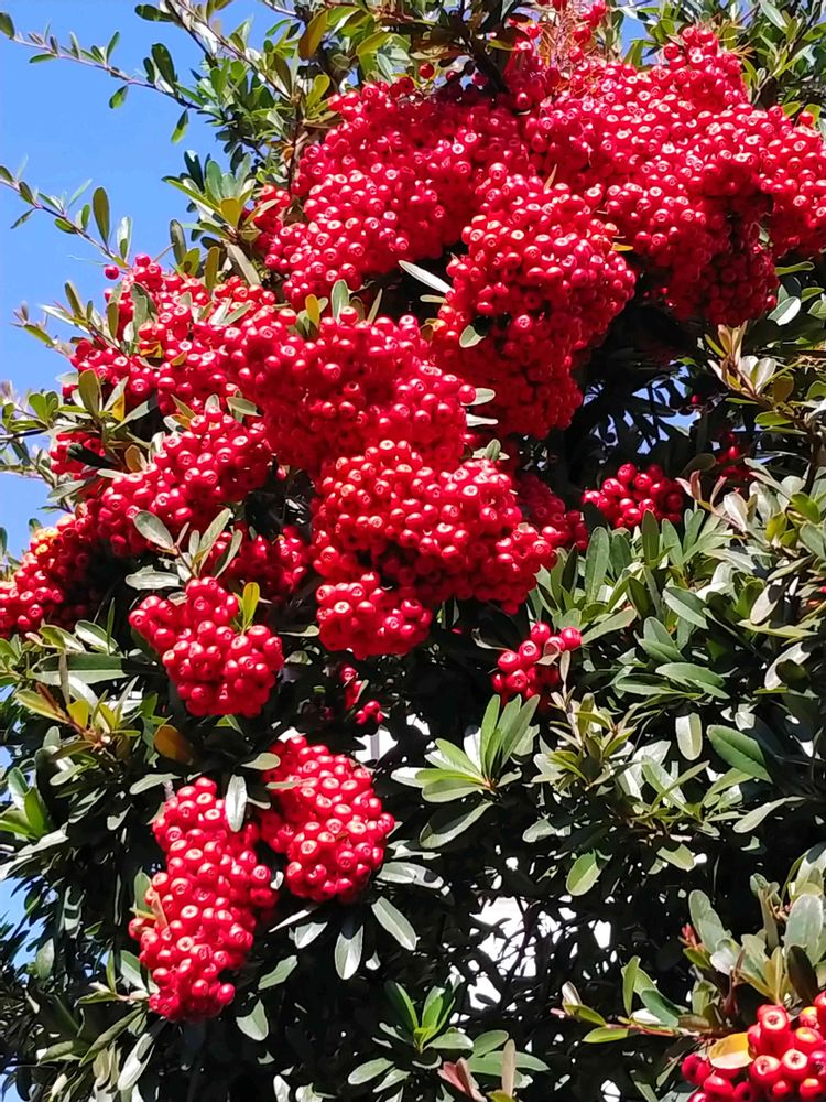 ピラカンサスの実には青酸系の毒(青酸配糖体)があるそうで野鳥たちはそれを知っています。 その毒は、実が熟す翌年の1,2月には消えて美味しくなり、野鳥たちはそれを待っています。🦜