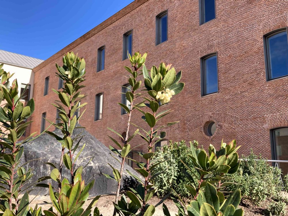 イチゴの木の花はスズランの様な形をしていて赤い実がなるとか。他にもハーブ類がポツポツ植っていました。