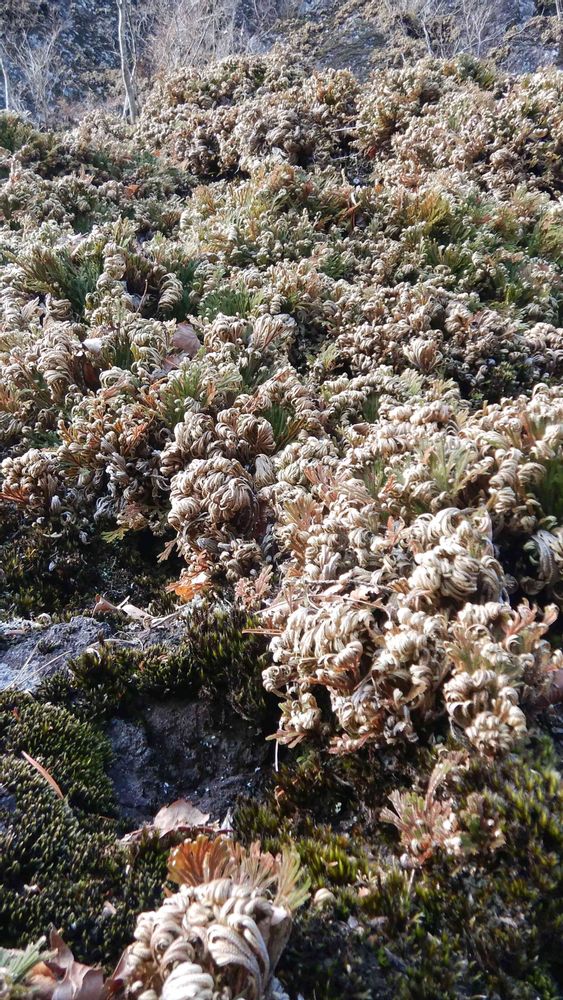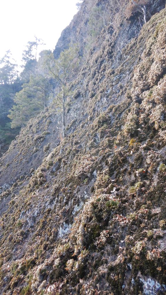 岩壁にびっしりとイワヒバ、こんな垂直な岩壁によくへばりつけるものですね。😉
