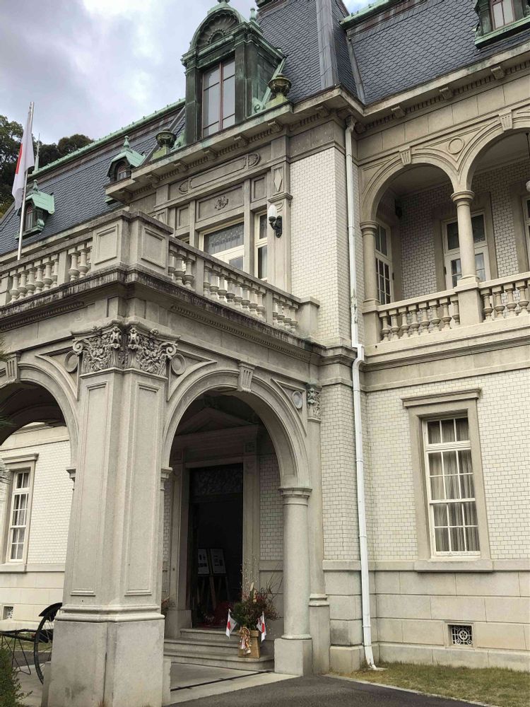 愛媛県松山市の国の重要文化財「萬翠荘」にて、ピンク色の「乙女ツバキ」をパチリ!📸🌸🌿🌞