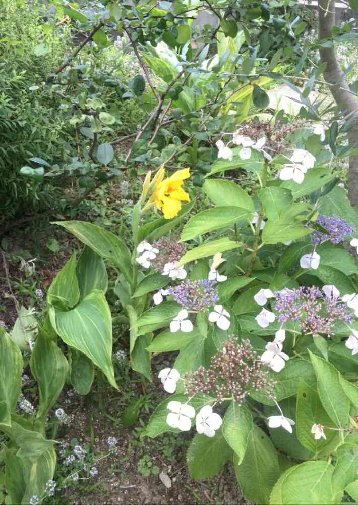 カンナが咲いていました。つぼみもちらほらあり、アジサイと交代です。