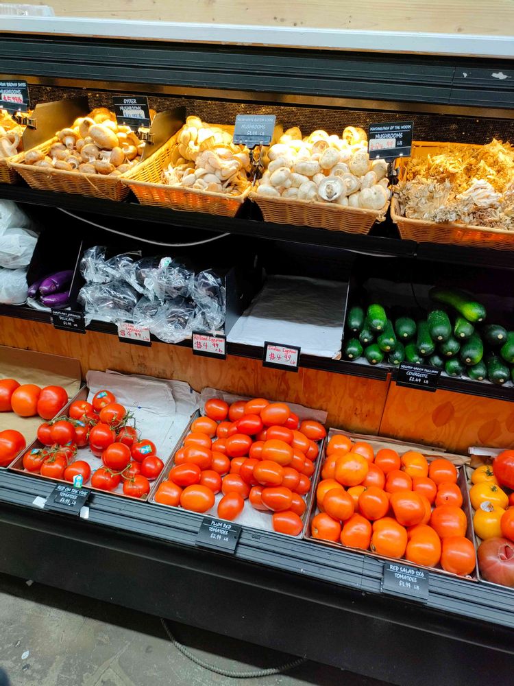 トマトとキノコ🍄も品種別に沢山の種類が売ってるし、量り売りなのが海外っぽくて好き💓
