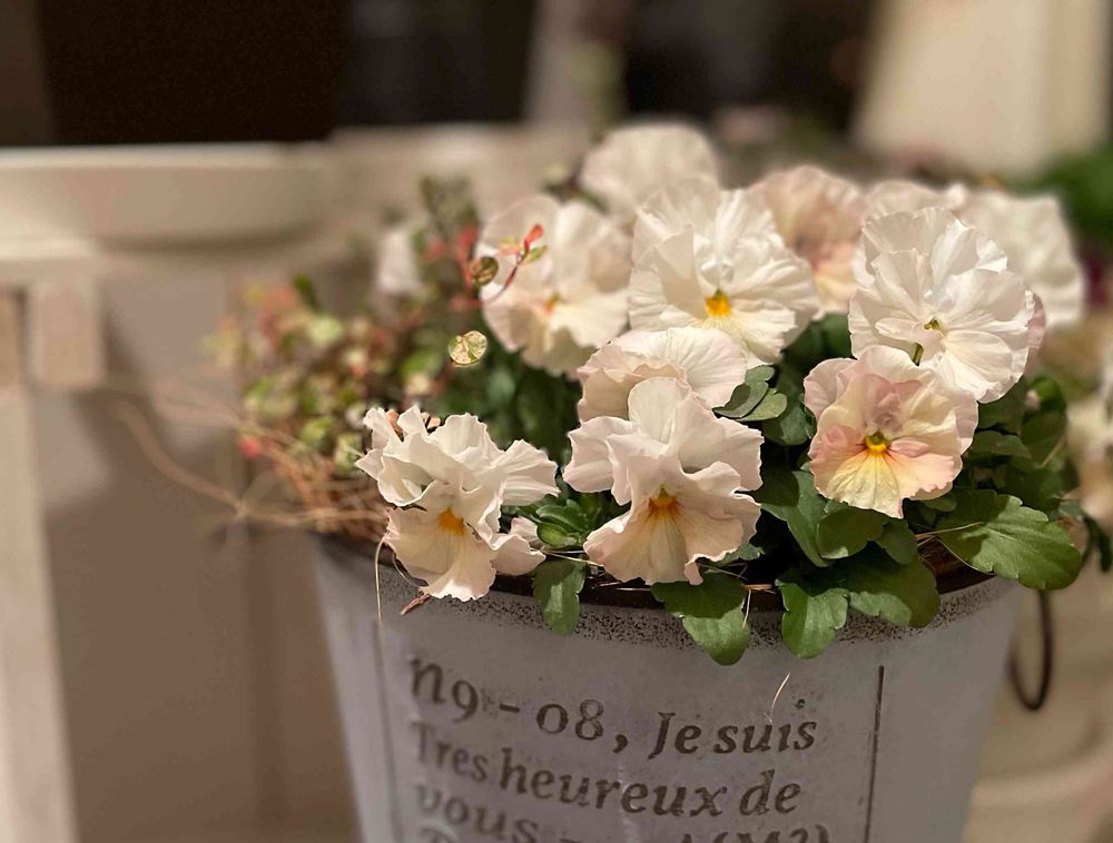 玄関,フリル咲き小輪パンジー ペルクレア,寄せ植えの投稿画像