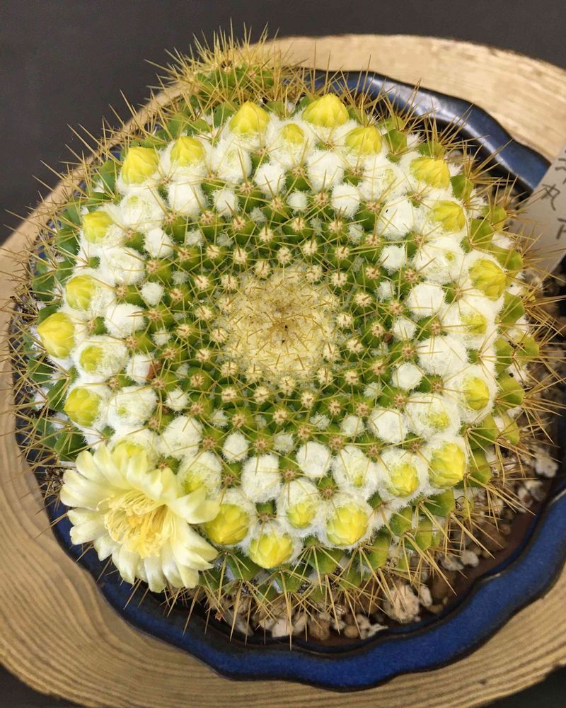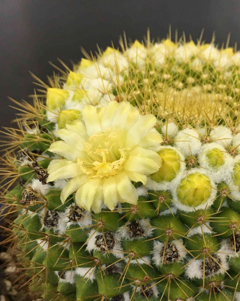 今年最初のサボテン花が咲きました🎉蕾がぐるりと囲んでいるのでこれからが楽しみです🎊