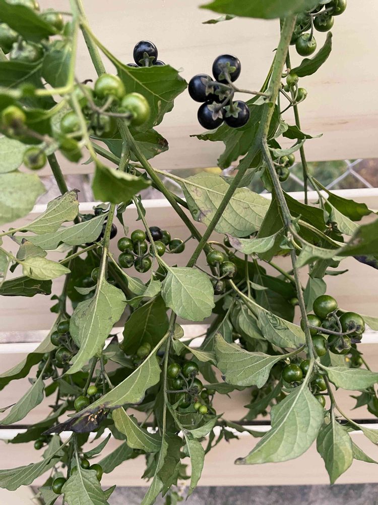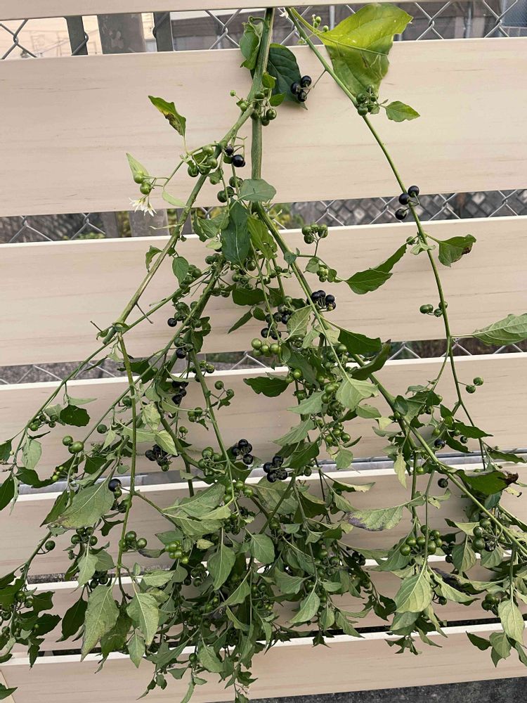 鳥さんの落とし物で一年くらいで生い茂ってしまったこの実がなる植物は一体何でしょう…