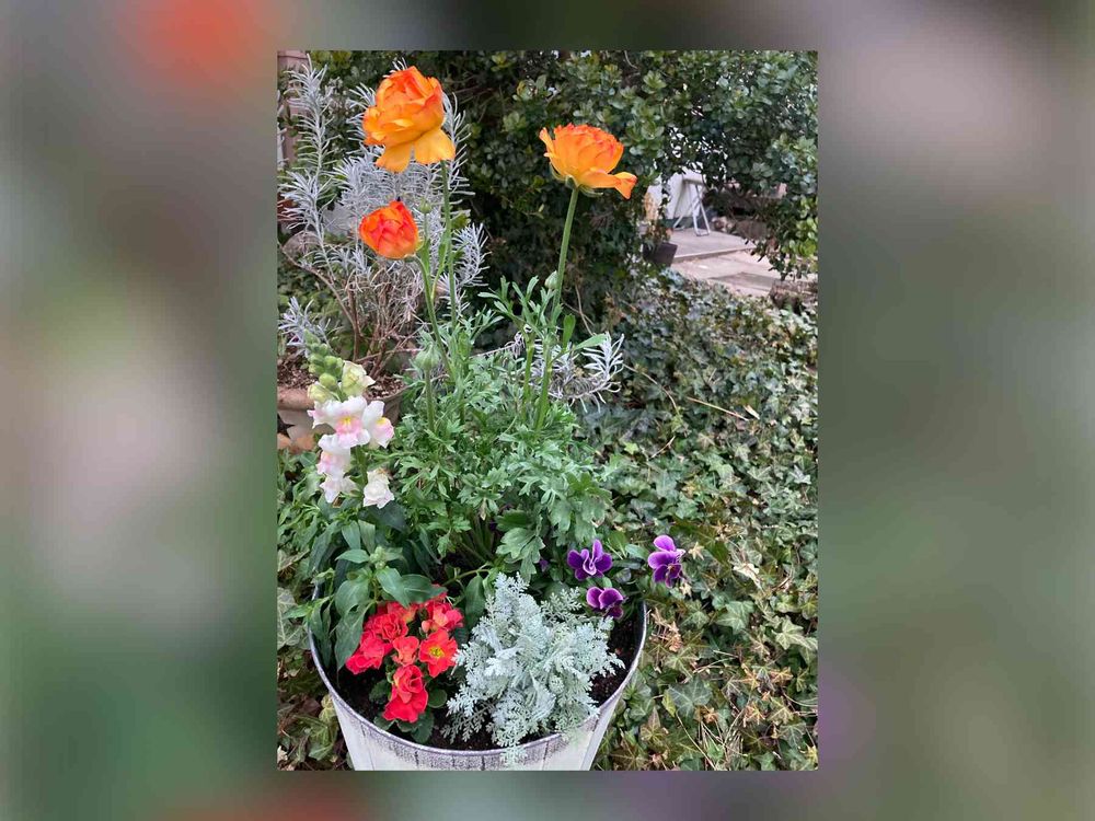 ラナンキュラス,プリムラマラコイデスうぐいす,繋がりに感謝の投稿画像