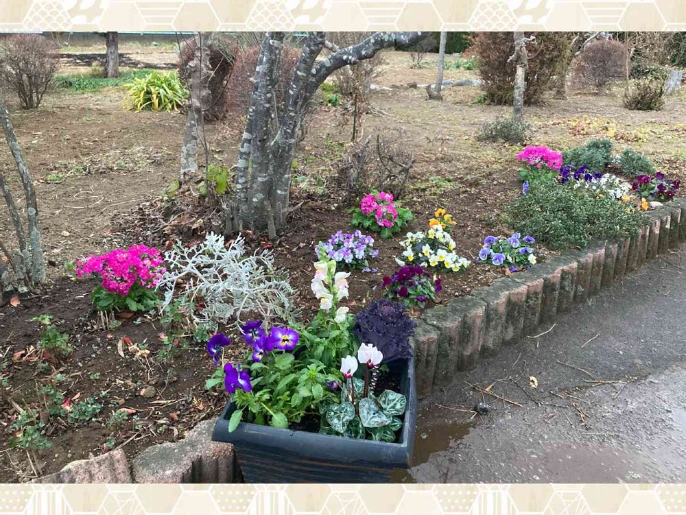 寄せ植え2個と、母家の花壇にプリムラのピンクをプラス💖