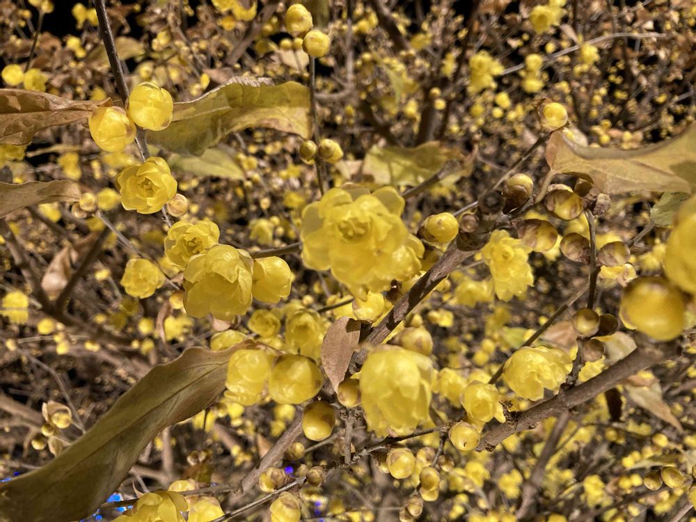 慈愛という花言葉を持つ蝋梅の、黄色い小さな華やぎ素敵だなぁ🎵✌️