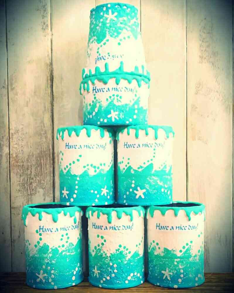 さん!ありがとうございます。夏はリメ缶が熱くなるので色だけでも爽やかに♪