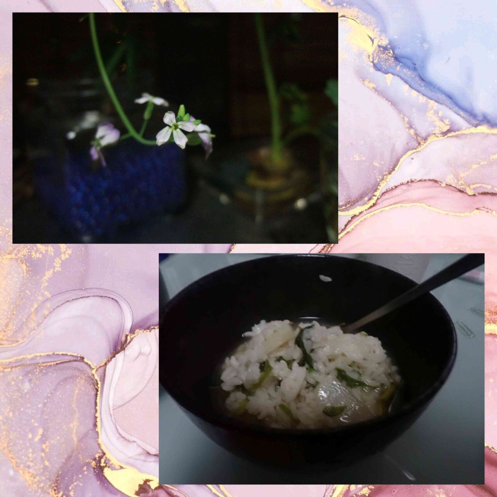 こちらでも、スーパーの七草セットびっくりするくらい値上がりしてました‼️この大根の写真の家は台所に出窓があって、色々置けたので楽しんでました。去年引っ越して今は何も置けなくなりました。使った残りの頭を水につけていたらグングン大きくなり、花まで咲いてしまったの🩷でも全体に異形で気の毒でした。