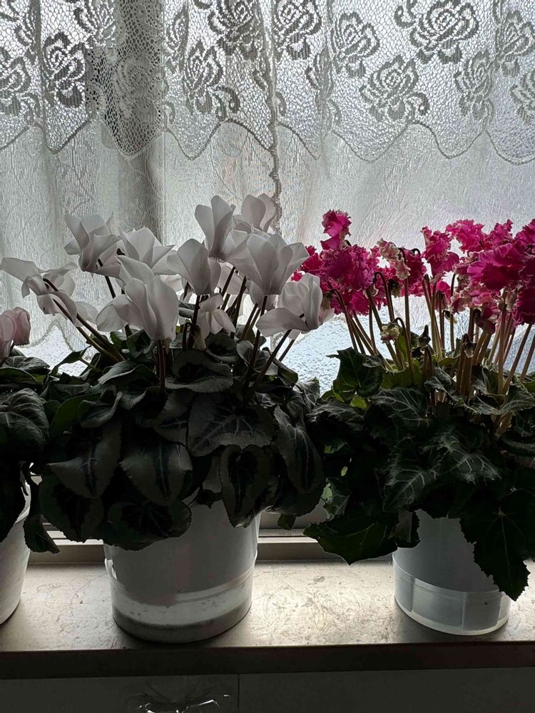 窓辺のシクラメン4鉢も置いてるんだ❣️