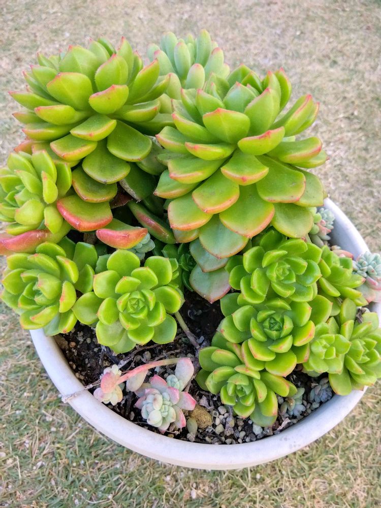 昨日の投稿に続きまして、こちらの鉢は昨年の春にレティジア2苗(+乙女心1苗)のカット苗を挿したものになります。