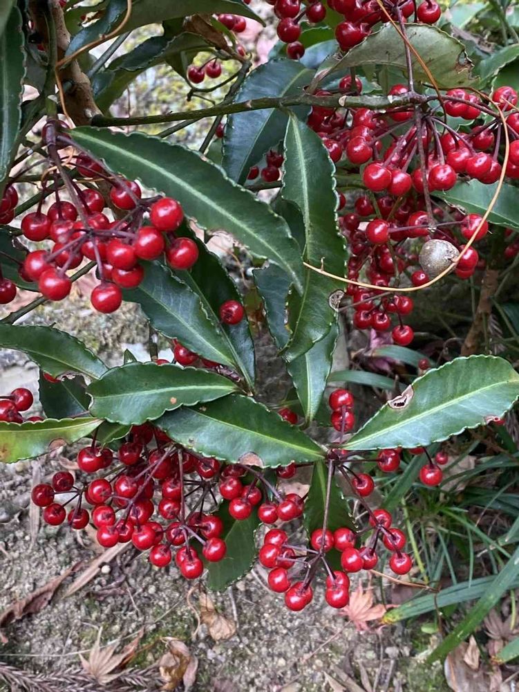 昨年、遊具の工事で入る事が出来なかった公園には、いつのまにかマンリョウがたくさん生えていました😄
