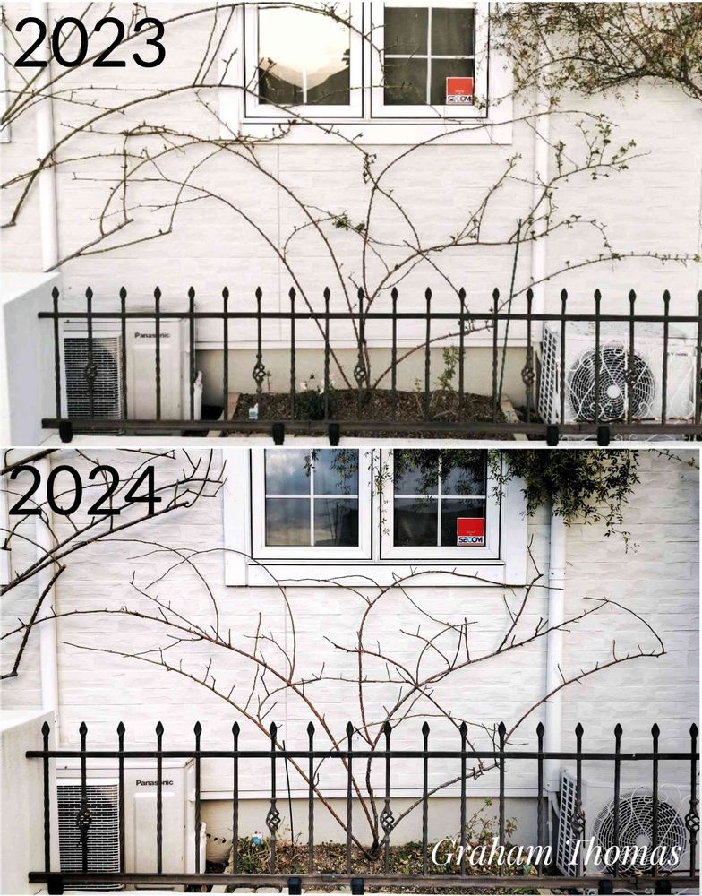 みどりのまとめにも書いてるうちのグラハムトーマス、去年と比較するとほとんど大きさ、樹形変わってませんでした😅