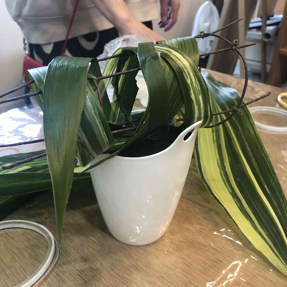 ワイヤーで円柱を作りハランを巻きつけます💦